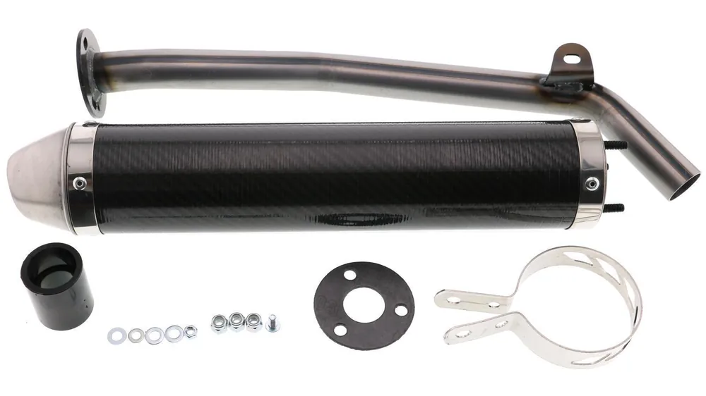 Giannelli Carbon Endschalldämpfer überzeugen im 125cc-Segment sogar noch mal eine Spur mehr als im 50cc Moped-Tuning Bereich. Der Schalldämpfer ist in einer moderaten Größe gehalten, die nicht gleich zu auffällig wirkt, den Sound aber trotzdem nicht außer Acht lässt.