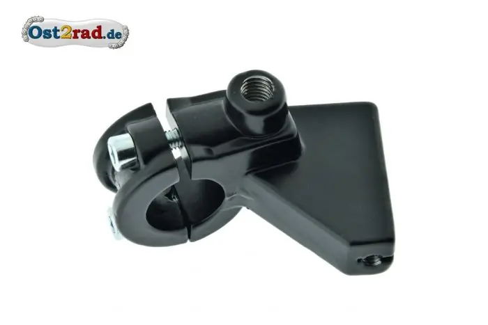 Lenkerarmatur, Halterung für den Kupplungshebel bei allen ETZ. Auch bei der TS und anderen Typen einsetzbar. Gefertigt aus Aluminium und schwarz lackiert. Inklusive Gewinde für Spiegel und Befestigungsschelle mit Schrauben. Der dazugehörige Hebel hat die Nummer 222.
