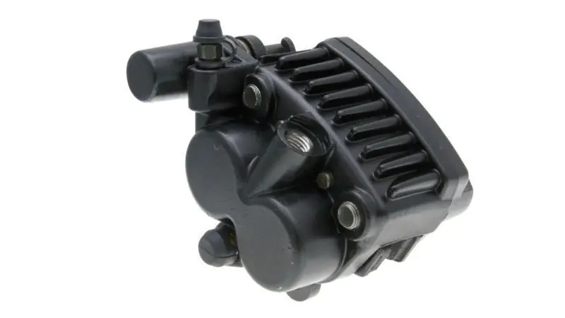 Kompletter Bremssattel für das Vorderrad von Aprilia MX 50 und RX 50 bis Baujahr 2005 sowie Generic Trigger 50 Schaltmopeds. Der Bremssattel wird mit Bremsbelägen und Fixierplatte geliefert.