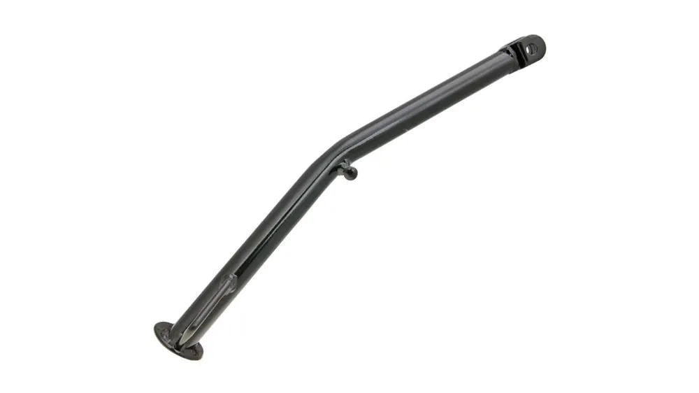 Schwarzer Seitenständer (Länge 355mm) für Derbi Senda, Aprilia SX, Beeline, CPI und Gilera SMT Super Motard Schaltmopeds mit 17 Zoll Bereifung.